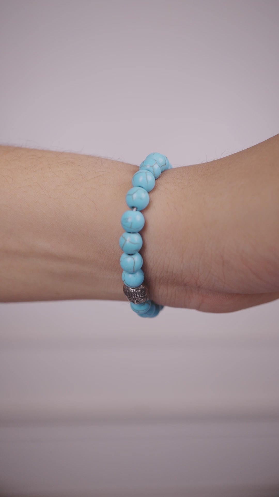 - This bracelet, made from turquoise beads, is empowered by a Vedic ritual and a specific mantra, leaving a positive impact.